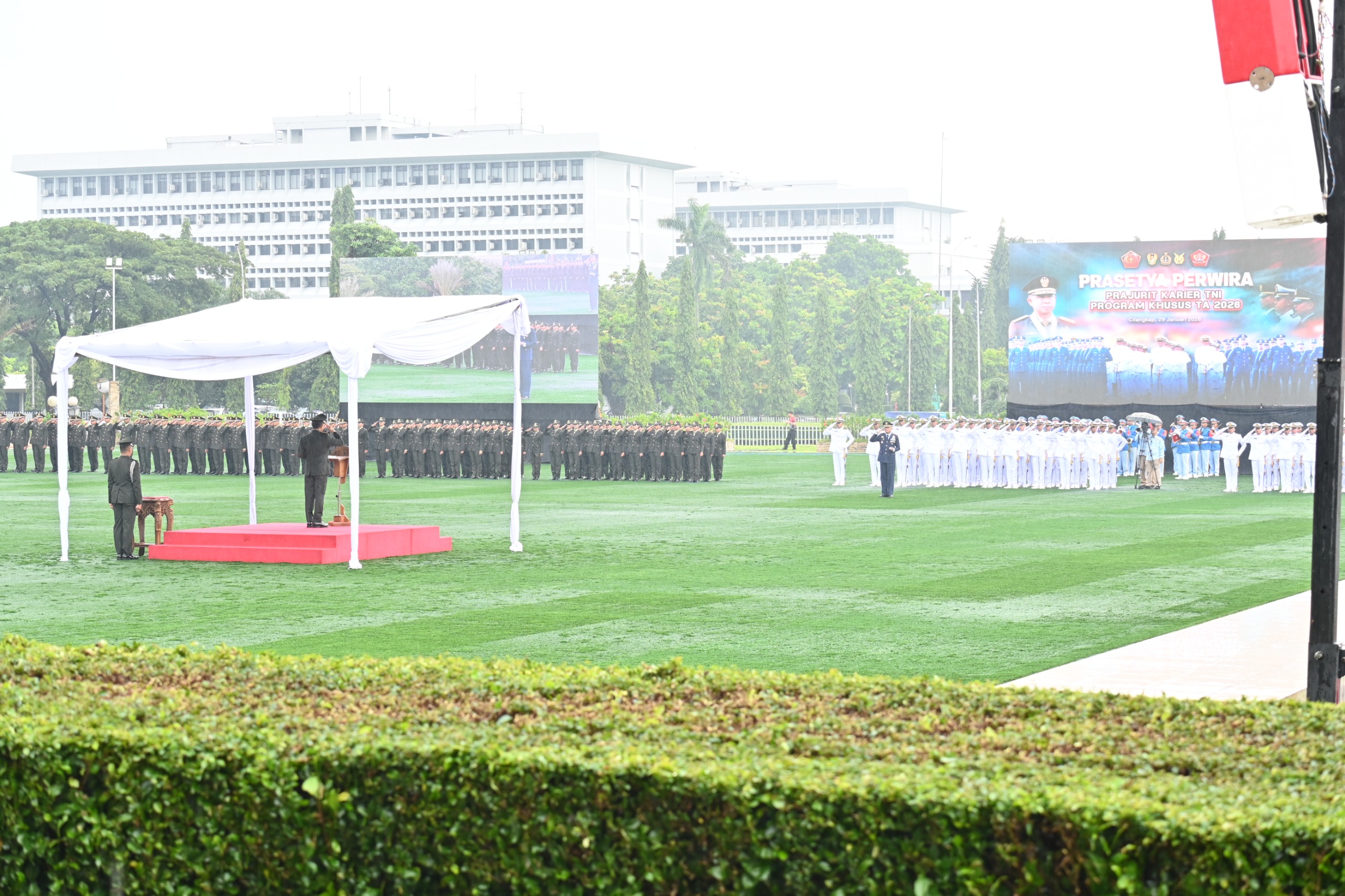Kapusjianstralitbang TNI, Marsda TNI Dr. Budhi Achmadi, M.Sc. dan Ketua IKKT PWA Cab 13 Gabungan Mabes TNI, Ny. Lulu Budhi Achmadi, hadir dalam Upacara Praspa Dikmapa PK TNI Program Khusus TA 2026 yang meriah dan penuh semangat. Acara ini menandai pelantikan dan pengambilan sumpah 260 Perwira Prajurit Karier Program Khusus, sebagai langkah strategis TNI dalam menyiapkan sumber daya manusia unggul yang profesional dan adaptif.
