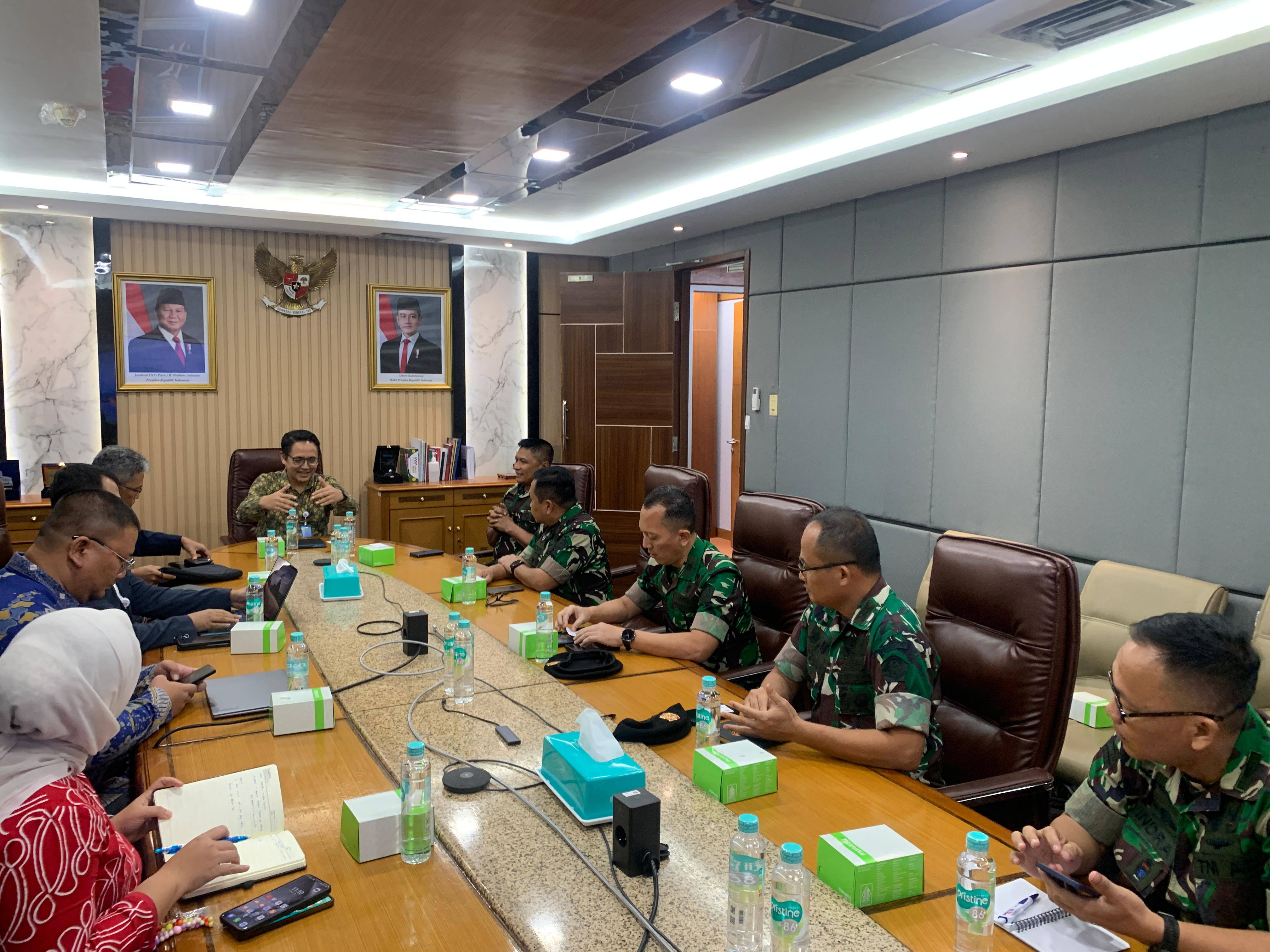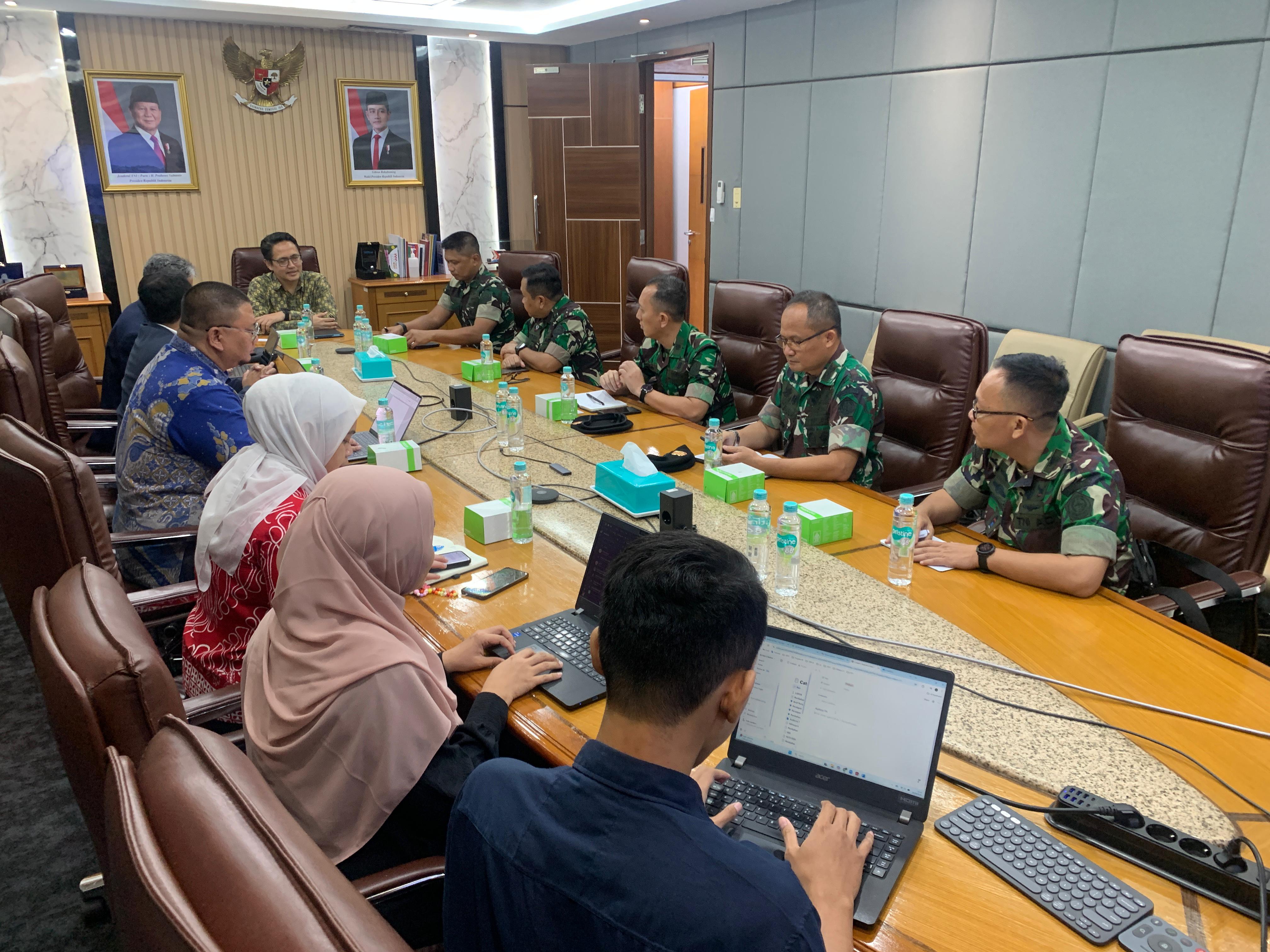 Kapusjianstralitbang TNI Marsda TNI Dr. Budhi Achmadi, M.Sc. didampingi Waka Pusjianstralitbang TNI Brigjen TNI Tarsisius Yoga Pranoto, S.Sos.,M.Si. dan Para PJU Pusjianstralitbang TNI melaksanakan audiensi dengan Dirjen Risbang Kemendiktisaintek RI Prof. Dr. Fauzan Adziman beserta stafnya di Ruang Rapat Lt. 4 Kemendiktisaintek pada Selasa, 16 September 2025. Pertemuan ini membahas potensi kerja sama antara TNI dan Kemendiktisaintek dalam bidang penelitian dan pengembangan, terutama dalam konteks pertahanan.