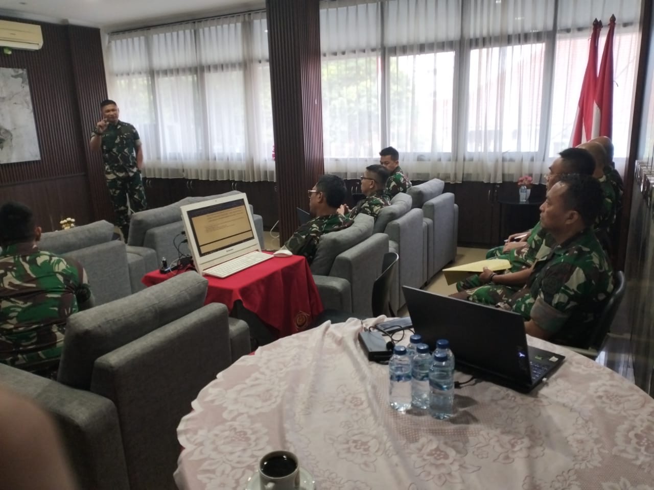 yang berlangsung di ruang transit lantai 2 Pusjianstralitbang TNI, yang