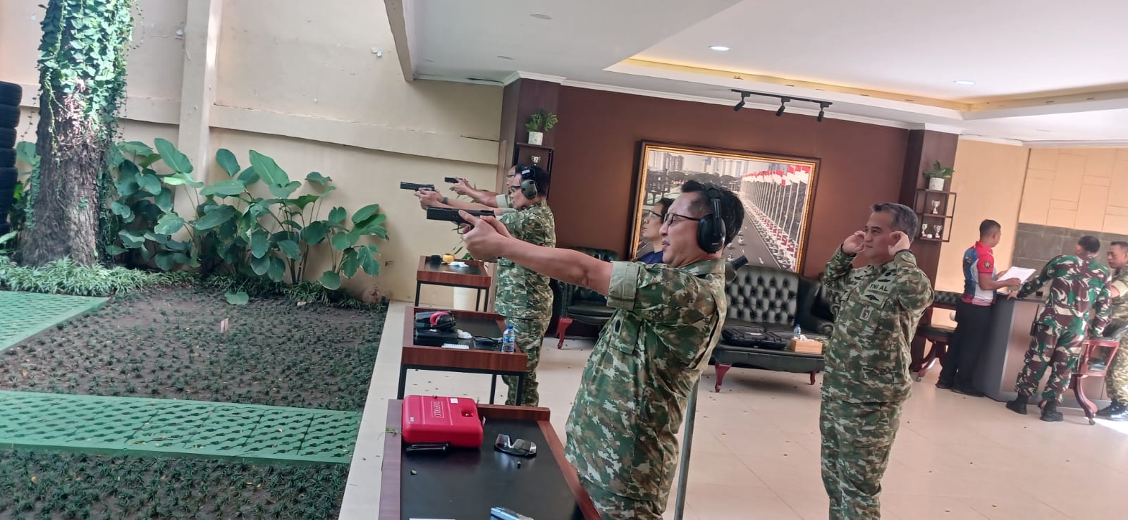 Dalam acara tersebut, Kapusjianstralitbang TNI didampingi oleh Direktur Pengkajian Strategi, Laksma TNI Alfred Daniel Mattews, M.Si (Han).,M.A. serta para PJU, Kabid, dan Kasubbid di lingkungan Pusjianstralitbang TNI. Latihan menembak ini berlangsung di Lapangan Tembak Pistol Paspampres, dengan suasana yang penuh semangat dan konsentrasi.