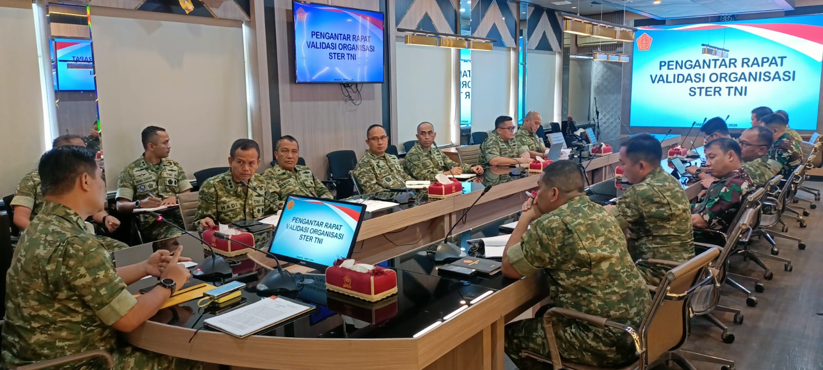 Rapat yang dipimpin oleh Karo Jemen Srenum TNI, Marsma TNI Agni Prayogo, S.E. ini membahas pentingnya Validasi Organisasi Ster TNI dihadapkan pada ancaman dan tantangan ke depan terhadap kedaulatan dan keutuhan NKRI yang semakin kompleks. Hal ini yang menjadi urgensi diperlukannya peran dan dukungan Teritorial TNI dalam pemberdayaan wilayah pertahanan guna mewujudkan daya tangkal dan daya dukung wilayah yang tangguh dalam mendukung Tupok TNI.